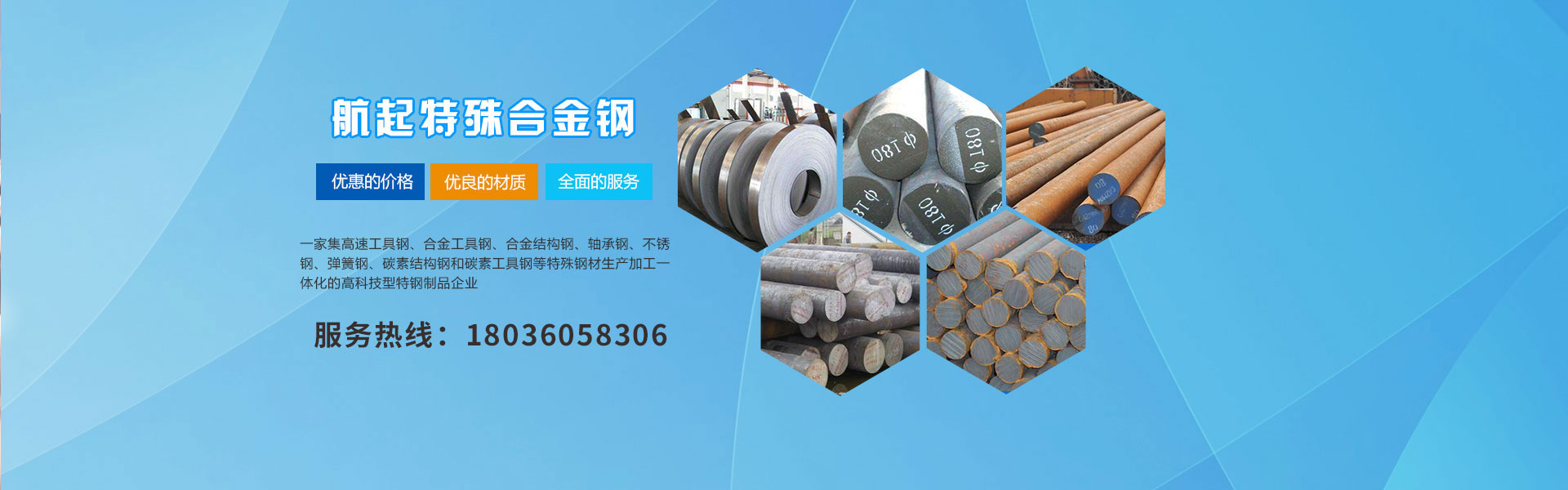 公司成立至今先后與東北特鋼集團、天工愛和、上海寶鋼集團、大冶特鋼、南鋼以及杭鋼簽署了供貨代理協議,為廣大用戶提供了 質的產品質量保障。